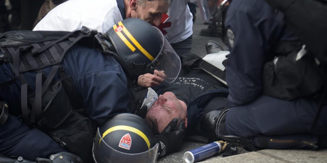 Un jeune homme vient de perdre sa main dans l’affrontement sur la soirée en mémoire de #SteveMaiaCanico . Il est évacué dans une voiture avec des teufeurs @davduf @MaximeReynie pic.twitter.com/uQvyw0qlzg