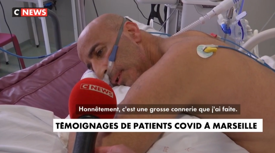 Dans la séquence, deux patients acceptent de témoigner. Afid, 54 ans, a toujours refusé de se faire vacciner. Il le regrette aujourd’hui : « Honnêtement, c’est une grosse connerie que j’ai faite », dit-il depuis son lit l’hôpital. « J’aurais mieux fait de me faire vacciner bien avant. Je ne serai pas là actuellement. C’est une souffrance… Une souffrance en permanence. On ne peut souhaiter ça à qui que ce soit, c’est très très dur, donc je conseille, les gars, ne jouez pas aux cons. Faites vous vacciner », lance-t-il en guise de conclusion.