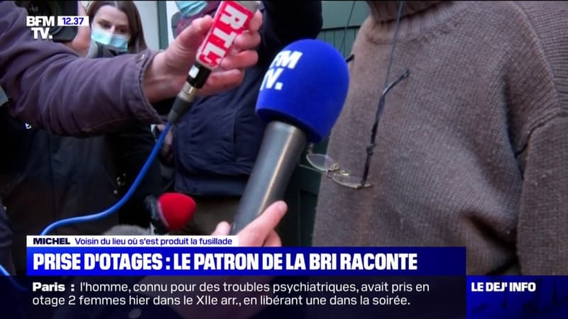 Dans l’après-midi ce lundi, un homme a pris en otage deux femmes dans une quincaillerie du XIIème arrondissement de Paris. Après une nuit de négociations, l’homme s’est finalement rendu. Un voisin témoigne au micro de BFMTV.