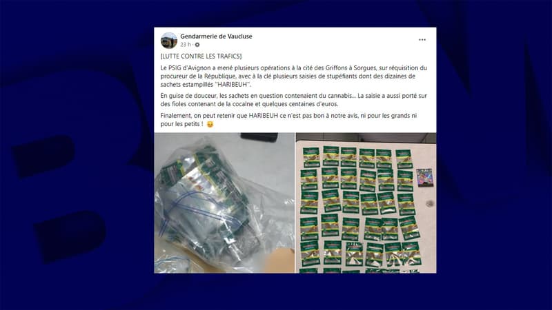 A Sorgues, dans le Vaucluse, les gendarmes ont mis la main sur 79 sachets de cannabis estampillés “Haribeuh”, dimanche.