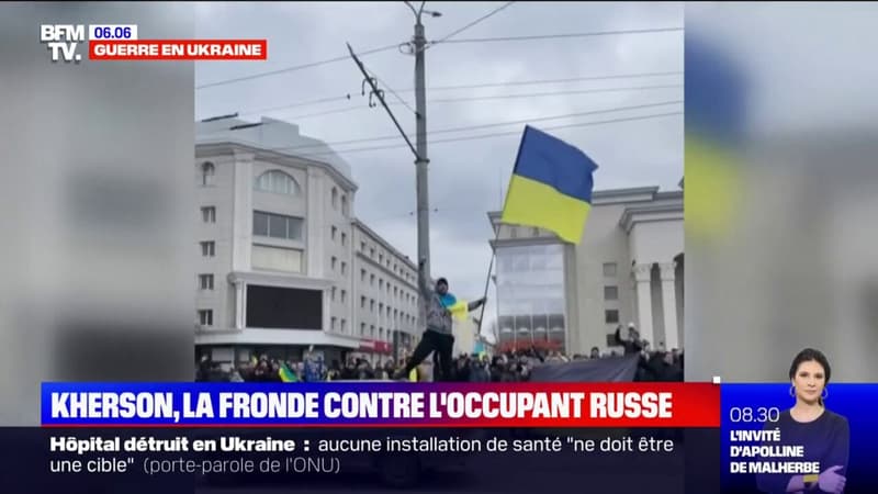 Dans la ville de Kherson, seule ville en Ukraine entièrement contrôlée par les Russes, les habitants manifestent tous les jours par centaines et font face aux soldats.