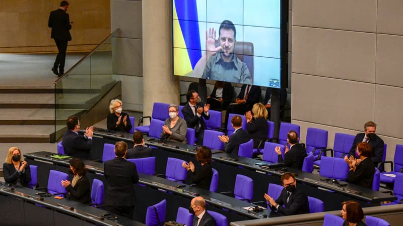 Le président ukrainien a reçu une ovation avant sa prise de parole, qui a duré une dizaine de minutes.