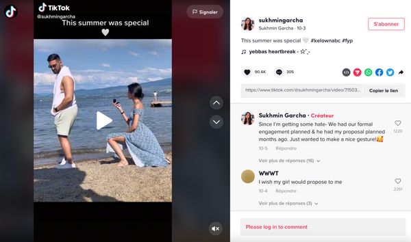 Sukhmin Garcha, ravie de partager sur TikTok sa demande en mariage, a reçu une vague de commentaires malveillant la bouleversant profondément. Un déversement de haine relatif au fait que ce soit elle qui ait fait la démarche et non son partenaire…