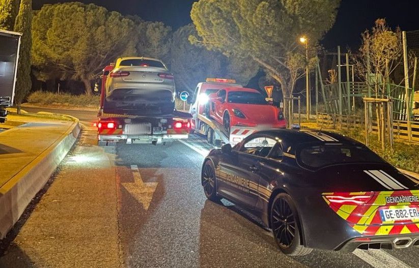 Deux jeunes hommes, un Montpelliérain et un Marseillais, se sont vus retirer sur le champ leurs permis de conduire respectifs, dans la nuit du 7 au 8 décembre, sur l’autoroute A9, ont rapporté mardi les services de la gendarmerie du Gard, sur leur page Facebook. Ces conducteurs, contrôlés à 221 km/h au lieu des 130 autorisés, faisaient la course, pensant « être seuls et libres de faire ce que bon leur semblait », déplorent les gendarmes.Mais c’était sans compter l’Alpine, le puissant bolide que les gendarmes du Gard ont récemment acquis. La voiture de sport et le SUV des deux chauffards ont pu être stoppés, sans difficultés, au niveau de la commune de Vergèze, par le peloton de l’autoroute. Les véhicules sont repartis sur des dépanneuses, direction la fourrière pour sept jours.Faits diversGard : Un « danger public » à fond, sans permis et sous l’emprise de stupéfiants sur l’autorouteFaits diversGard : Alcoolisé, le chauffeur d’une camionnette déverse son chargement sur l’autoroute