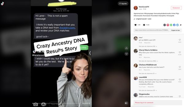 Dans une série de vidéos publiées sur TikTok, Lane est revenue sur la manière dont elle avait appris que son père n’était pas son père biologique. Une histoire débutée lorsqu’elle a reçu un texto inconnu lui demandant de procéder à un test ADN.