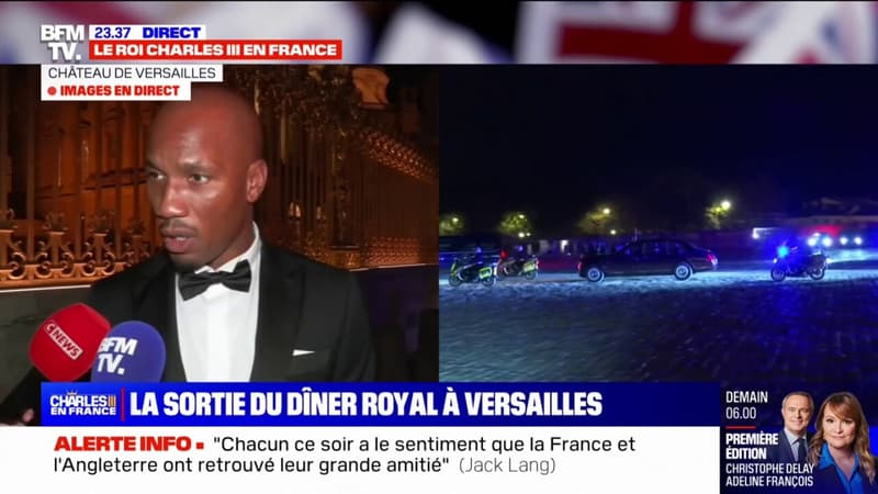 Didier Drogba, l’ancien footballeur international, réagit à la sortie du dîner d’État organisé au château de Versailles en l’honneur du roi du Royaume-Uni, Charles III.