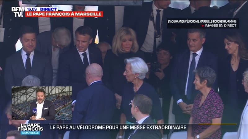 Emmanuel Macron est arrivé au stade Vélodrome pour assister à la messe du pape François. Le pape François tiendra une messe au stade Vélodrome devant 62.000 fidèles. Lorsqu’il célébrera l’eucharistie, le chef de l’Église catholique brandira une hostie géante.