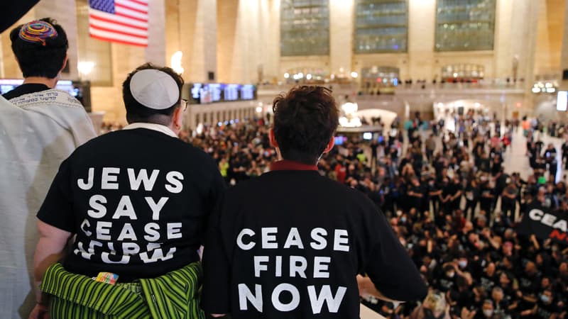 Un sit-in impressionnant a été organisé dans la célèbre gare de Grand Central, à New York, bloquant le hall principal. Les manifestants appelaient en faveur de la paix au Proche-Orient.