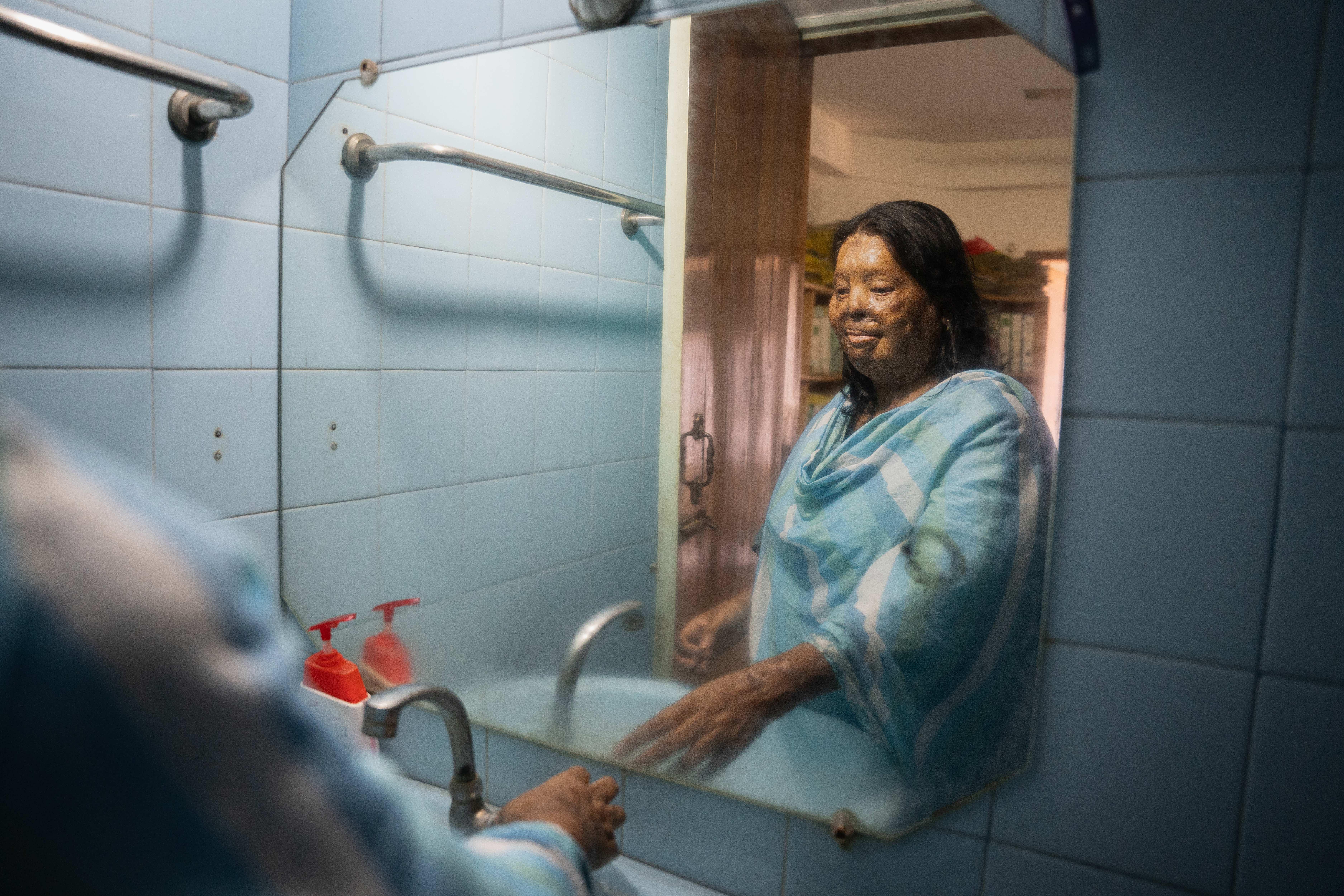 Toutes ont vécu ces douleurs dans leurs chairs, infligées par un mari violent, un amant jaloux ou tout homme coupable de ces attaques. Selon l’ONU, 46 % des auteurs sont des proches des victimes. Les cicatrices sont visibles, les traumatismes lovés en profondeur. Attaquée en 1992, à l’âge de 15 ans, Shamima Khusi a, elle aussi, subi des heures d’opérations chirurgicales, de greffes de peau notamment. Son agresseur, un homme d’une quarantaine d’années à qui elle avait refusé un mariage, l’a poursuivi en pleine rue pendant de longues minutes, avant de commettre son crime. Une fois soignée, dès ses 18 ans, elle ne sortait plus de chez elle sans se couvrir le visage, un voile faisait l’affaire. Moquée par les enfants du quartier, et stigmatisée par les hommes de sa communauté, elle a eu le déclic seule devant son miroir, à 40 ans.