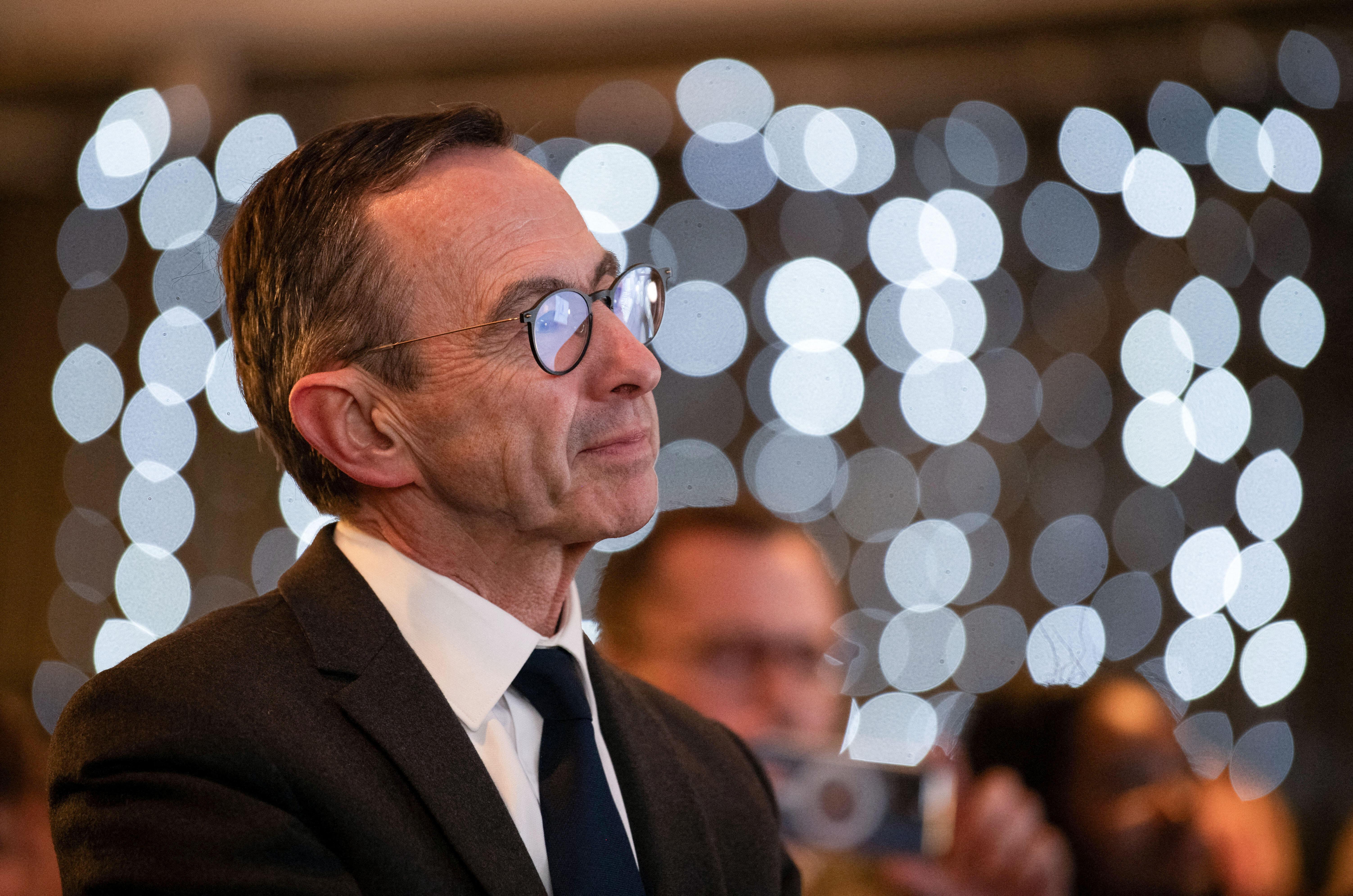 Vêtu d’un pull en laine devant la cheminée qui crépite, Bruno Retailleau livre des anecdotes à ses amis