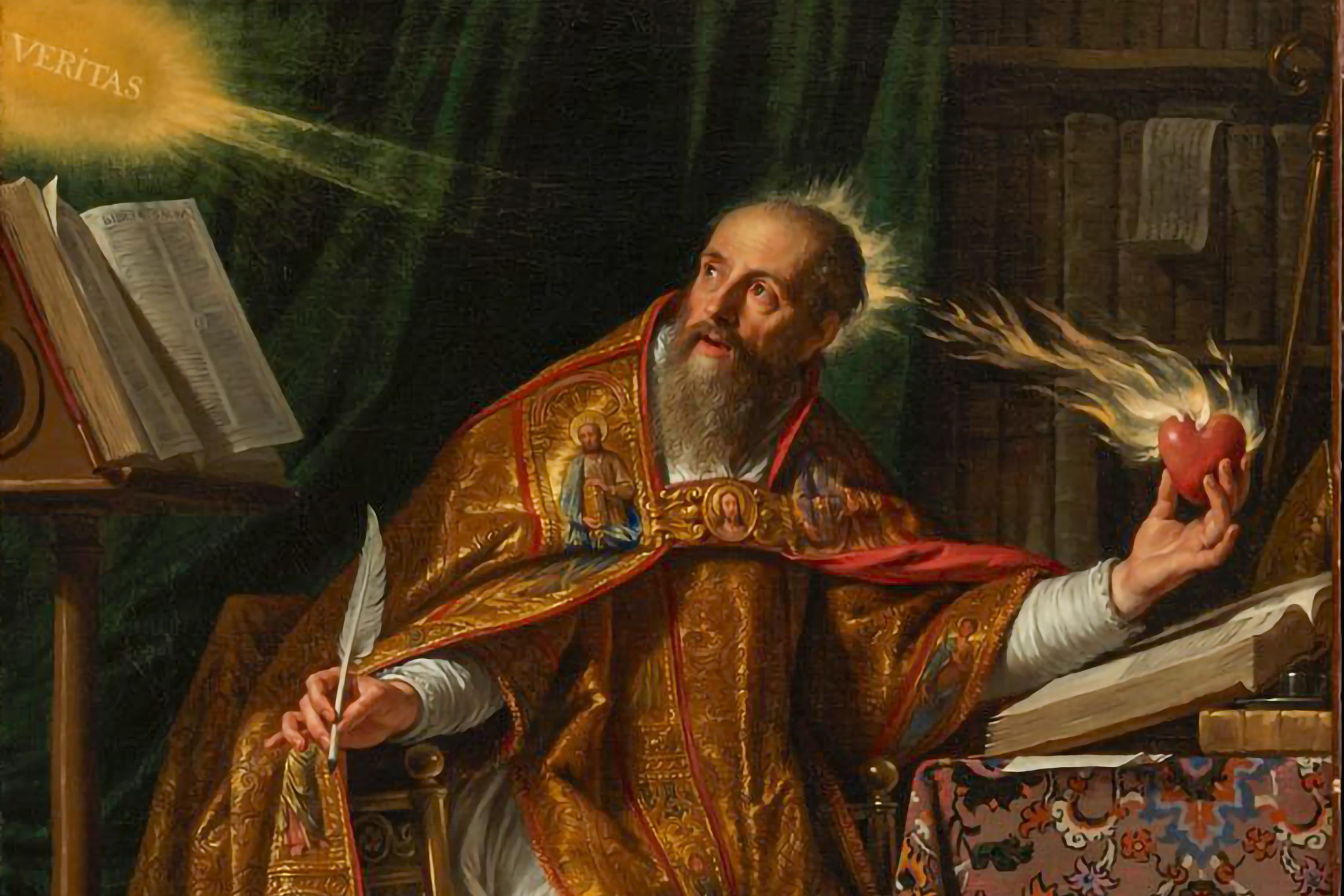 L’intériorité, c’est cette pudeur qui sied aux grands spirituels comme l’auteur des Confessions, lui qui a découvert Dieu « plus intérieur que le plus intime en lui » ; c’est le visage de la piété, prière d’un cœur qui se fait « mendiant de Dieu » – ce cœur brûlant qui figure sur le blason de Léon. La charité, enfin, vertu cardinale du chrétien, et, au premier chef, du pontife romain. Augustin l’incarna sa vie durant, redisant avec saint Jean « Dieu est amour » – Deus caritas est.