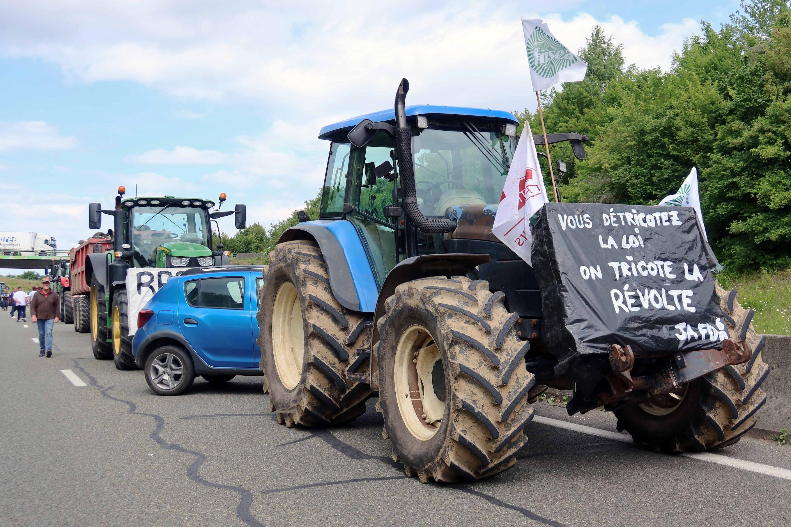 C’est reparti : des tracteurs tournent autour d’un rond-point, jeudi près de Fontainebleau (Seine-et-Marne). Sur la chaussée, « Agri 77, le retour ». « Cessez d’emmerder ceux qui bossent ! » lance Augustin, un jeune céréalier du sud du département. L’Oise ou le Nord ont aussi résonné des coups de semonce cette semaine, avant une mobilisation remontée dès ce lundi. C’est en effet demain que devait débuter l’examen, en séance publique à l’Assemblée, de la proposition de loi du sénateur LR Laurent Duplomb.