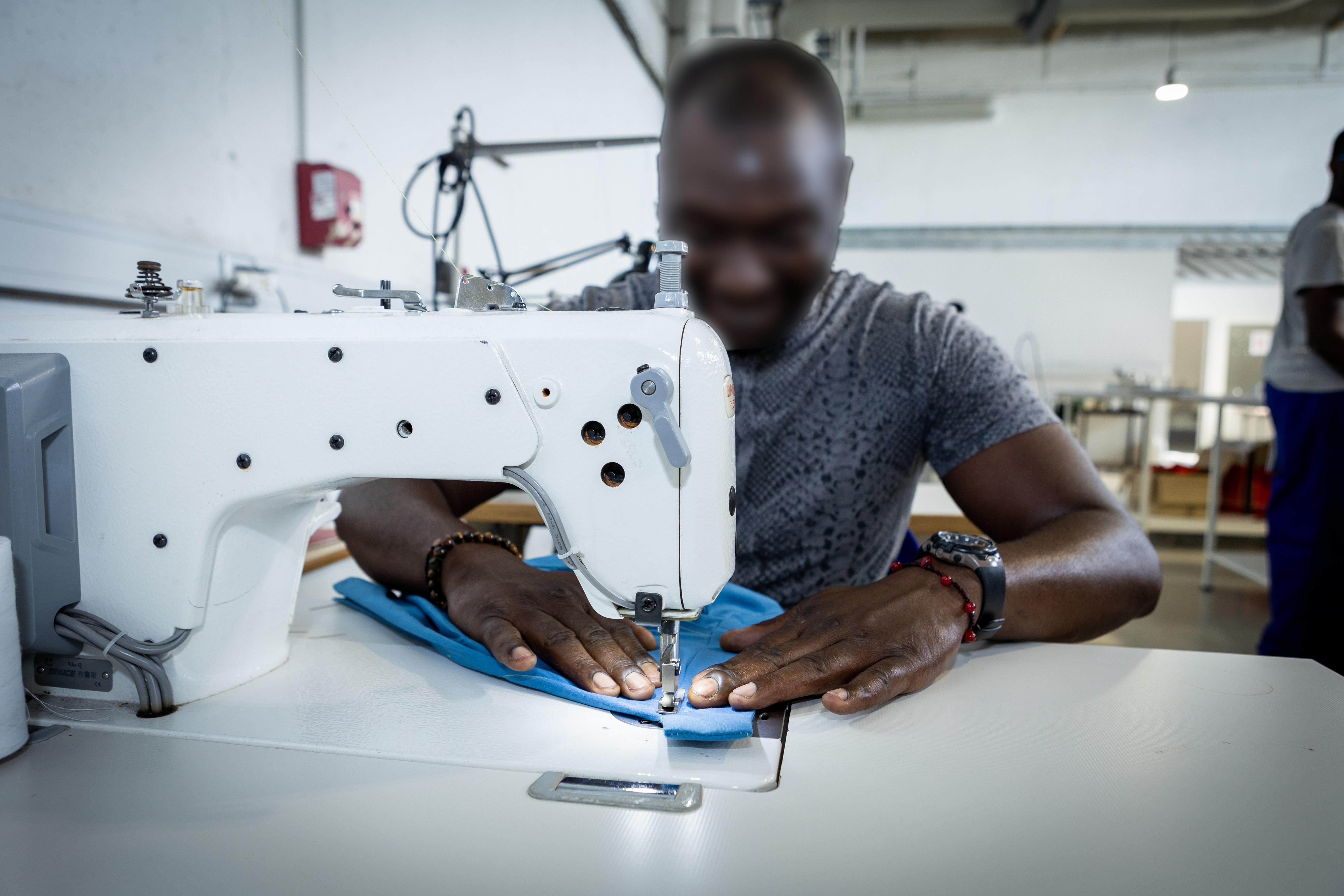 À quelques mètres de là, derrière une autre porte métallique, on change de décor. Dans une salle plutôt claire, les machines à coudre ont remplacé les moteurs. Nous entrons dans l’un des ateliers les plus demandés : la confection de vêtements sur mesure. Les détenus y apprennent à fabriquer un vêtement de A à Z, à réaliser des retouches, à manier tissus et patrons. À la clé : l’obtention d’un certificat de compétence professionnelle. Sur des machines étonnamment modernes – piqueuses plates, surfileuses, thermocolleuses, fers à repasser –, les détenus, concentrés, enchaînent les gestes techniques pour donner vie à leurs vêtements. À l’entrée de l’atelier, un portant expose leurs créations : chemises bien coupées, pantalons ajustés, vestes impeccablement taillées. Joachim, 28 ans, en est fier : « La couture m’aide à me canaliser. Elle m’a appris la rigueur et la concentration. » Un lien intime le lie à cet univers : « Quand j’étais petit, ma mère et ma grand-mère cousaient. Ça me rappelle ces moments-là. »
